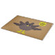 This awesome glass cutting board features a funny cartoon of a turkey with big black eyes, a small yellow beak and tail feathers sticking up. The feet are facing in opposite directions making the turkey look clumsy. The turkey is holding a yellow balloon with a message inside that says “it’s turkey time”. This is a fun thanksgiving party design.