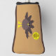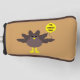 This awesome golf putter cover features a funny cartoon of a turkey with big black eyes, a small yellow beak and tail feathers sticking up. The feet are facing in opposite directions making the turkey look clumsy. The turkey is holding a yellow balloon with a message inside that says “it’s turkey time”. This is a fun thanksgiving party design.