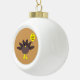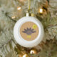 This awesome ornament features a funny cartoon of a turkey with big black eyes, a small yellow beak and tail feathers sticking up. The feet are facing in opposite directions making the turkey look clumsy. The turkey is holding a yellow balloon with a message inside that says “it’s turkey time”. This is a fun thanksgiving party design.