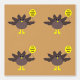 This awesome patterned wallpaper features a funny cartoon of a turkey with big black eyes, a small yellow beak and tail feathers sticking up. The feet are facing in opposite directions making the turkey look clumsy. The turkey is holding a yellow balloon with a message inside that says “it’s turkey time”. This is a fun thanksgiving party design.