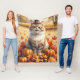 Turkish Angora Cat Autumn Leaves Thanksgiving Art Fleece Blanket
