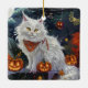 Turkish Angora Cat Halloween Spooky Ceramic Ornament