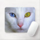 The all-white Turkish Angora is a beautiful cat with soft white fur. Mis-matched eyes is a common trait among Turkish Angora cats.