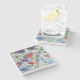 The coasters are gorgeous, a quality feel and heavy weight. They look like a precious archeological find. A rustic stone juxtaposed with a modern floral black and white print. I like the way the print goes slightly imperfect on the cut stone edges giving them a kind-of natural beauty.