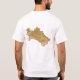 The front of this t-shirt bears a small Turkmen flag with its familiar white crescent and stars on a green background with decorative vertical band towards the hoist, while the back displays a relief map of Turkmenistan. Available on t-shirts, sweatshirts, polos, long-sleeves and more.