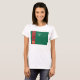 The front of this t-shirt boldly displays the Turkmen flag with its distinctive white crescent and stars on a green background with decorative vertical band towards the hoist. This is matched at the back by an attractive map of Turkmenistan.