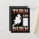 Cool barrel racing design for barrel racer or cowgirl who loves riding her horse fast around barrels at a rodeo. Turn and burn novelty design features cool quote and cowgirl on horse silhouette.