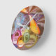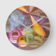 These dramatic clocks add a touch of flair to your decor. This one is from an abstract in fun colours with multi-coloured bubbles and shapes. Counter clockwise numbers for people who are always short on time - or just for people who like to be a bit different!