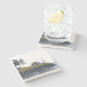 The coasters are gorgeous, a quality feel and heavy weight. They look like a precious archeological find. A rustic stone juxtaposed with a modern floral black and white print. I like the way the print goes slightly imperfect on the cut stone edges giving them a kind-of natural beauty.
