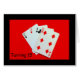 A photograph of four playing cards - a 2 Of Spades, 3 Of Hearts, 4 Of Clubs and 6 Of Diamonds - is the subject of my "Turning 15 Is A Big Deal!" birthday card. The four playing cards, which total 15 points, show up nicely against a bright red background.