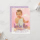 She's turning one! This stylish purple first birthday photo invitation features your daughter's photo with a bold hand-lettered script name and "Is Turning One!" overlay in rich purple. Party details sit beneath in modern typography for a polished, feminine look. The back displays a playful purple and white confetti dot pattern. All text is fully customisable for your little one's celebration.