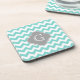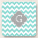 Turq / Aqua White Chevron Grey Quatrefoil Monogram Coaster