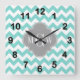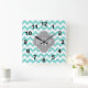 Turq / Aqua Wht Chevron Grey 3 Initial Monogram Square Wall Clock