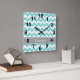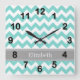 Turq / Aqua Wht Chevron Grey Name Monogram Square Wall Clock