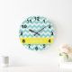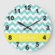 Turq / Aqua Wht Chevron Yellow Name Monogram Large Clock