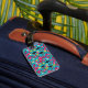 I was happy with the acrylic tag but it came with a thin leather strap to attach the tag to luggage (like a cat collar). I replaced the strap with a metal ring off of a key ring as the leather strap would come undone or break easily as luggage is sometimes handled without much care by airlines. Printing is great. Colours and positioning of the design I put on the tag were perfect. Very pleased.