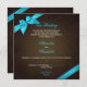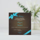 Turquiose Ribbon on Brown Grunge Wedding Invitation