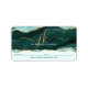 Elegant and stylish candle or soap packaging label featuring a monogram business name on turquoise agate geode with gold glitter veins and sparkle accents with spaces to handwrite information for CREATED BY and SCENT and includes your contact information. The sample is shown on the Address Label size of 2.375x1.25" with 18/sheet. ASSISTANCE: For help with design modification or personalisation, transferring the design to another product or if you would like coordinating items, contact the designer BEFORE ORDERING via the Zazzle Chat MESSAGE tab or email makeitaboutyoustore@gmail.com.