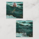 Turquoise Agate Gold Glitter Script Photo QR Square Business Card