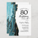 Turquoise, white and gold agate 80th birthday party invitation. Elegant modern design featuring watercolor agate marble geode background, faux glitter gold and typography script font. Trendy invite card perfect for a stylish women's bday celebration. Printed Zazzle invitations or instant download digital printable template.