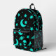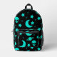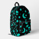 Turquoise Alien Pattern with Stars and Moons Printed Backpack