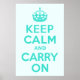 Turquoise and Azure "Keep Calm and Carry On" modern version of classic poster.