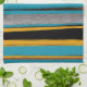 Turquoise And Black - Abstract Art Stripes Tea Towel