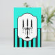 Turquoise and black candelabra striped RSVP card
