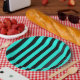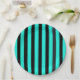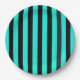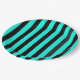 Turquoise and black stripes print paper plate. This item is part of a collection that is customisable.
