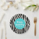 Turquoise and Black Zebra Stripe Birthday Party Paper Plate