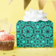 This striking wrapping paper features a bold turquoise and blue kaleidoscope fractal pattern arranged in a seamless geometric repeat. Intricate symmetrical shapes and layered textures create a dramatic design that blends abstract symmetry, psychedelic colour, and modern digital art into a vibrant decorative pattern.