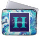 Turquoise and Blue Marble Monogram Name Beachy Laptop Sleeve