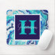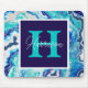 Turquoise and Blue Marble Monogram Name Mouse Pad