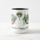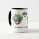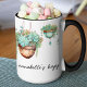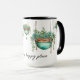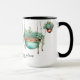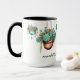Customise this cute mug for birthdays, best friends, neighbours and all plant lovers and succulent fans. Succulents in hanging copper pots decorated with gold garden beads and turquoise jewels addorn all sides of this two toned mug. Great for coffee mug collectors and plant moms.