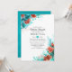 Turquoise and coral watercolor roses and tropical foliage virtual long distance baby or bridal shower invitation.