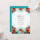 Turquoise and Coral Rustic Floral Wedding Photo Invitation