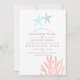Summer Beach Wedding invitation featuring hot colour trend combo turquoise and coral.