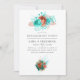 Turquoise and coral roses and tropical foliage summer engagement party invitations designed to be quickly and easily customised to your event specifics.