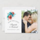 Turquoise and coral roses and tropical foliage summer wedding save the date photo cards designed to be quickly and easily customised to your event specifics.