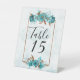 Turquoise and Gold Peony Wedding Table Number Pedestal Sign