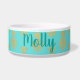 White ceramic dog food / water bowl done in turquoise, around the outside, with a gold pineapple pattern. Personalise the custom text for your pet or as a great gift idea for any pet owner.