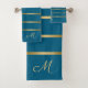 Turquoise and gold stripes pattern bath towel set