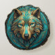 Turquoise and Gold Wolf Round Cushion