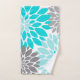Turquoise and Gray Chrysanthemums Floral Pattern Bath Towel Set