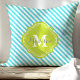 Turquoise and Green Striped Monogram Cushion