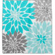 Turquoise and Grey Chrysanthemums Floral Pattern Shower Curtain