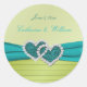 Turquoise and Lime Glitter Heart Round Sticker