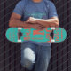 Turquoise and Living Coral Grunge Word Cloud Skateboard