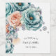 A stunning watercolor floral arrangement featuring turquoise, dark mint, peach, and dark peach peonies and roses, beautifully accented with diamond elements and deep green foliage. Perfect for elegant wedding invitations!