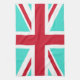 Turquoise and red pattern based on the crosses in the Union Jack.